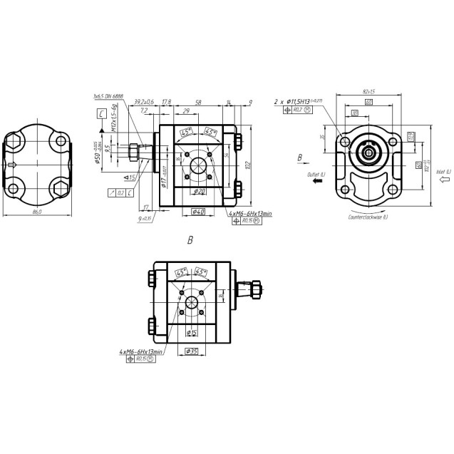 Насос шестеренный левого вращения GP2K11L-F292C-F применяется на тракторах Fendt: