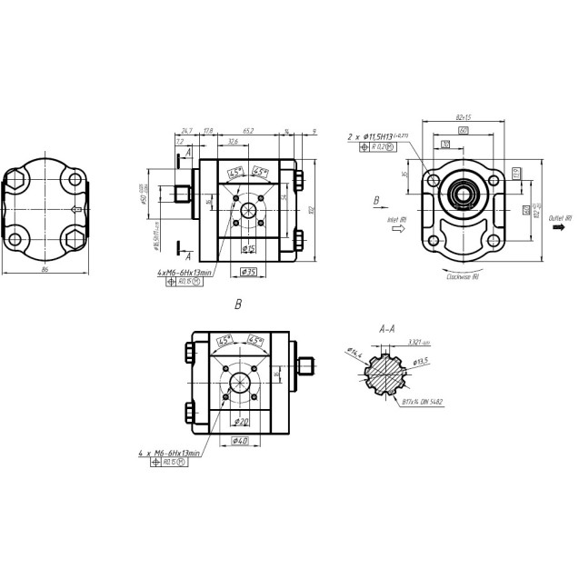 | Всмоктуючий порт | Фланець German, 4 отв. М6-13, Ø40 мм |