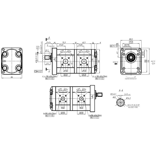| Всмоктуючий порт | Фланець German, 4 отв. М6-13, Ø40 мм |