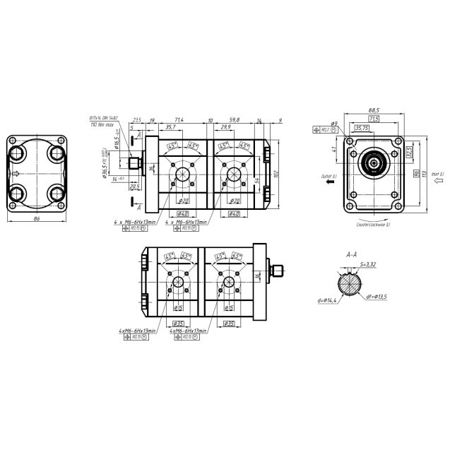 | Всмоктуючий порт | Фланець German, 4 отв. М6-13, Ø40 мм |