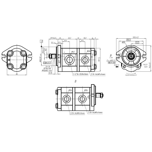Двосекційний насос шестеренний лівого обертання GP2K11/2K4L-F281CC-F застосовується на зернозбиральних комбайнах John Deere: