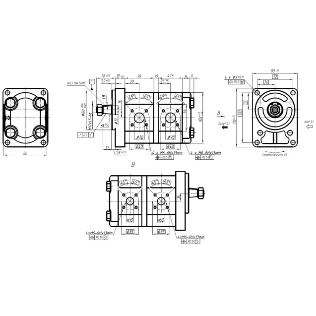 Двосекційний насос шестеренний лівого обертання GP2K11/2K4L-F281CC-F застосовується на зернозбиральних комбайнах John Deere: